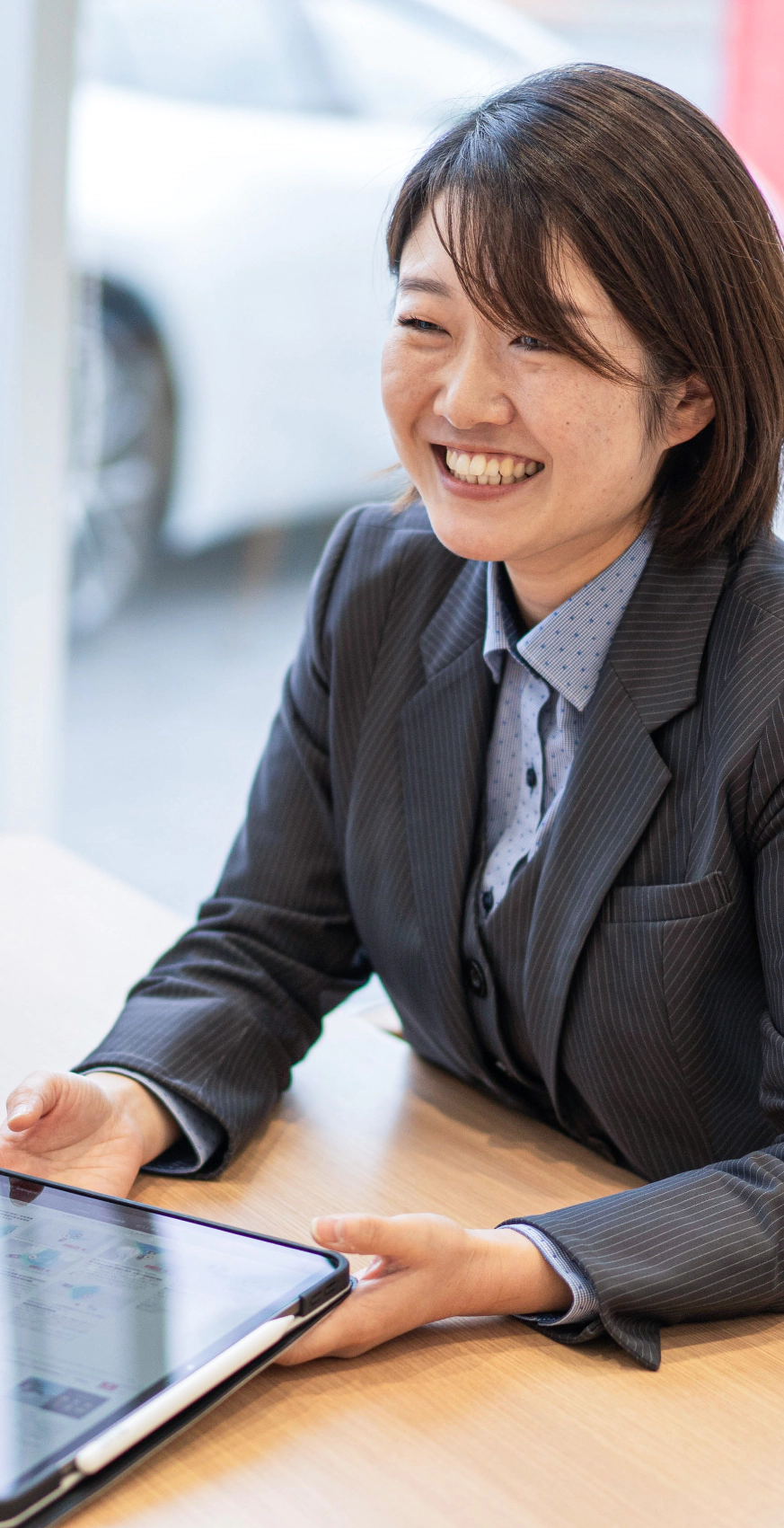 お客様が自然に話してくださって、場が和んでいると感じるときです。私は、ガツガツと押すような営業はあまり得意ではない分、車の性能を一方的に説明するよりも、まずはお客様が話しやすい雰囲気をつくることを大切にしています。そうやって自然に関われていると感じるときに、自分らしさが活きていると思います。
